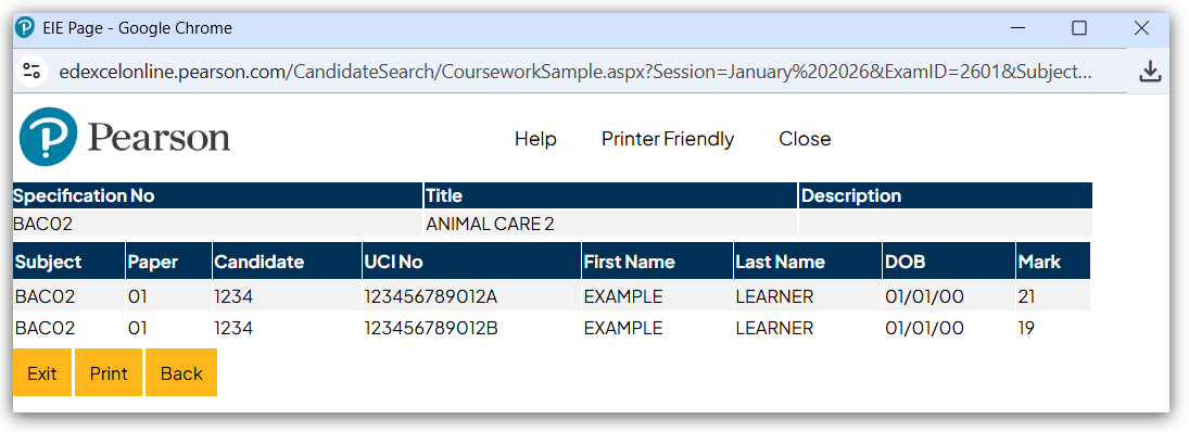 - Once a mark has been submitted for a learner, it cannot be adjusted before the whole cohort has been submitted for moderation. If a mistake is made and an incorrect mark is applied to a learner, you must finish submitting all marks for all learners entered for this component in this session and then notify courseworkmarks@pearson.com team where the error needs to be corrected.
