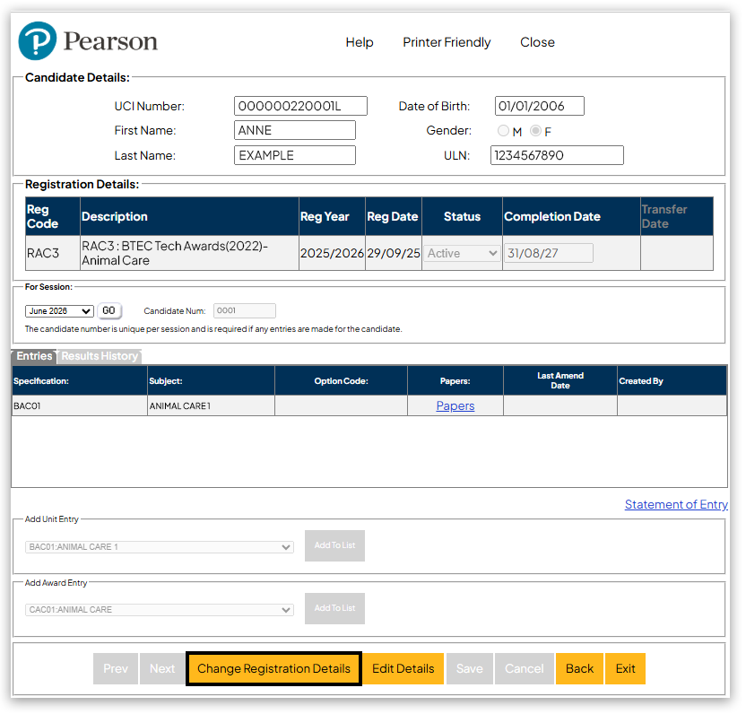 7. To withdraw the registration of the registered learner, click 'Change Registration Details':
