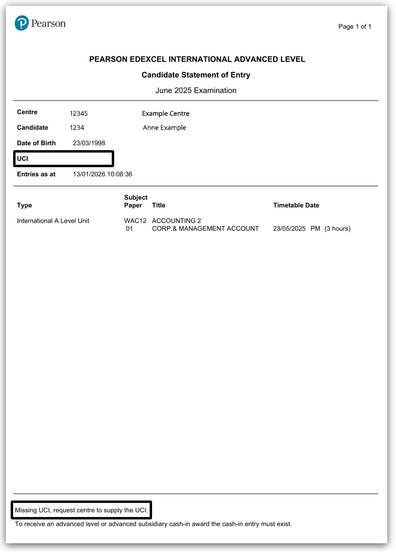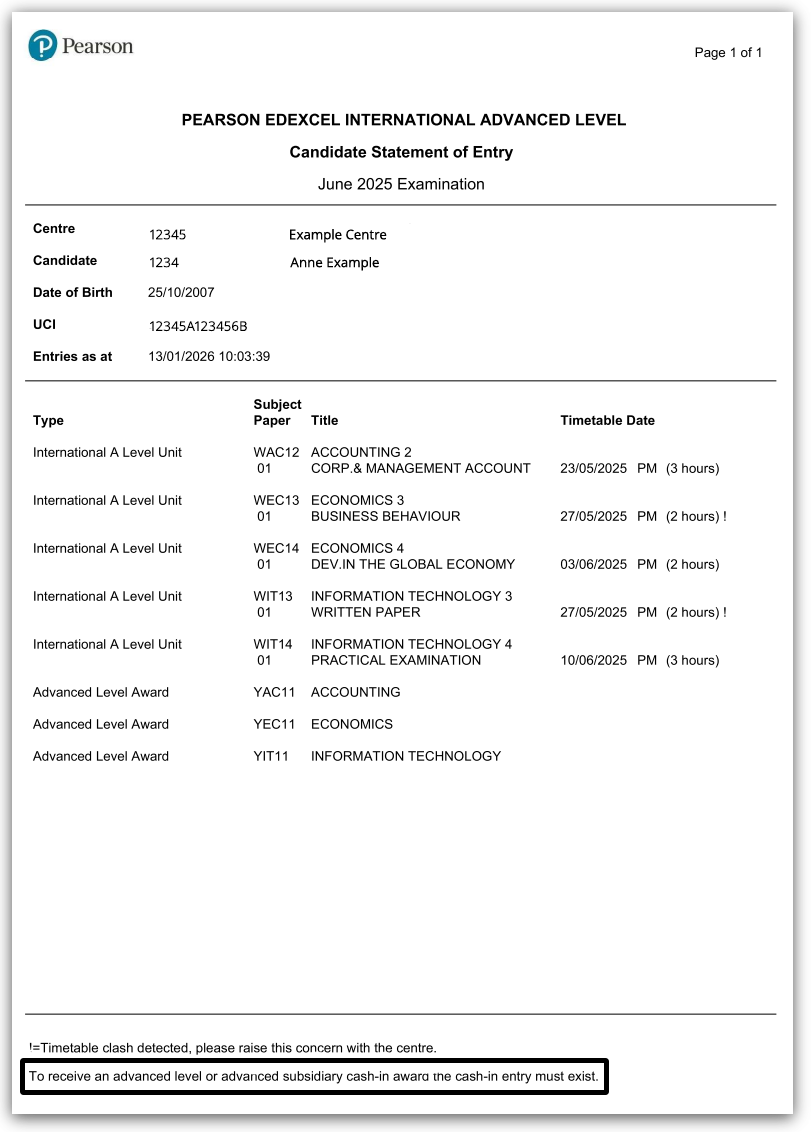 - Qualification, subject/paper and timetable date.