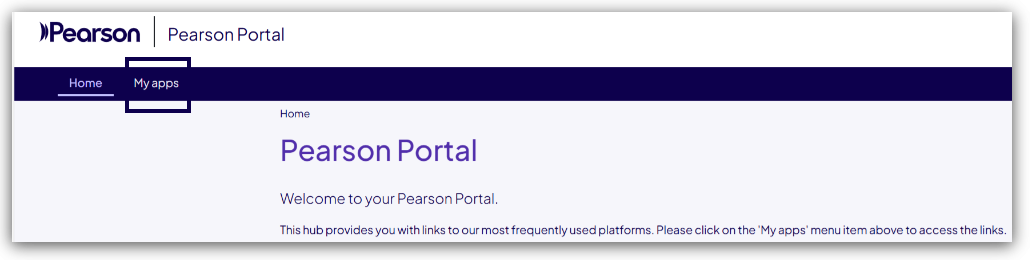 11. You will then see the Pearson Portal home page. Click on the 'My Apps' option: