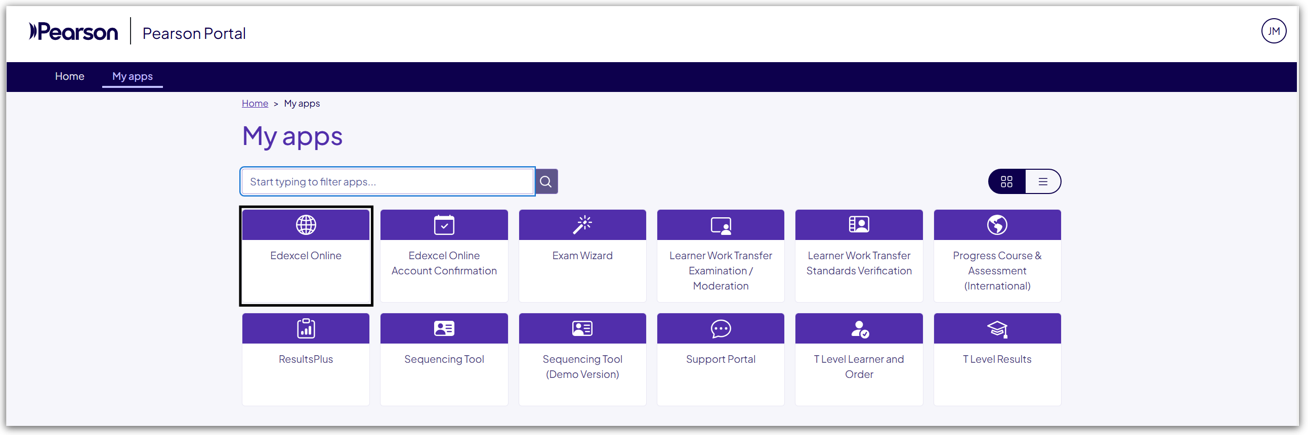7. You will see various Pearson apps linked to your EOL permissions, i.e., you only see the T Level apps if you have that option ticked in your EOL account.