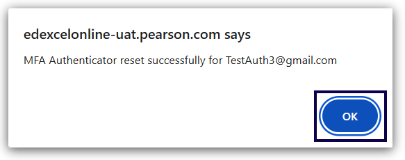 Please note: If the Reset MFA Authenticator column displays 'Reset not permitted' for a user, this means their role requires Pearson to perform the reset on their behalf. Please advise them to contact us for further guidance.
